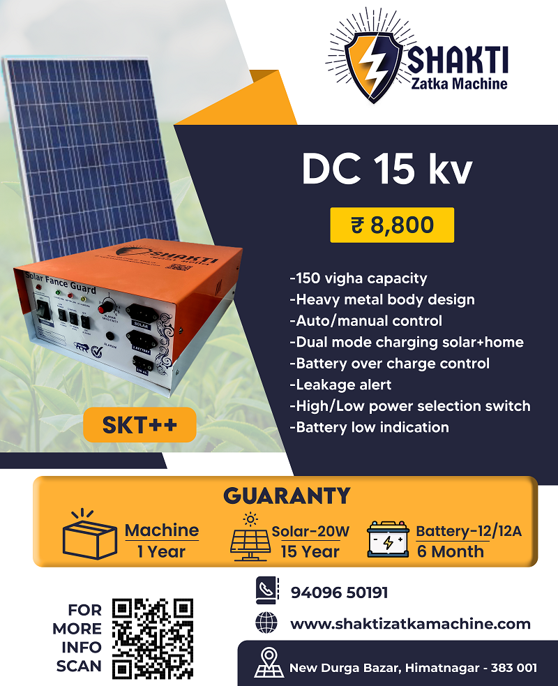 We are offering Solar zatka machine of different range with solar panel & battery at affordable price.